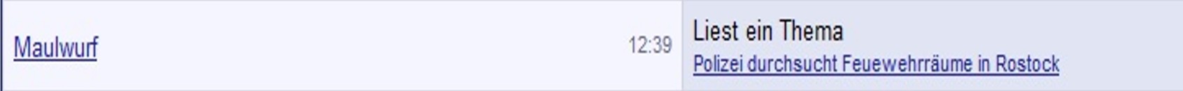 "Bei Durchsuchungen der Rostocker Feuerwehr haben Staatsanwaltschaft und Polizei fremde Software gefunden, mit denen gezielter Datenmissbrauch möglich ist. (...) "Man konnte eins-zu-eins mitlesen", sagte Schütt."