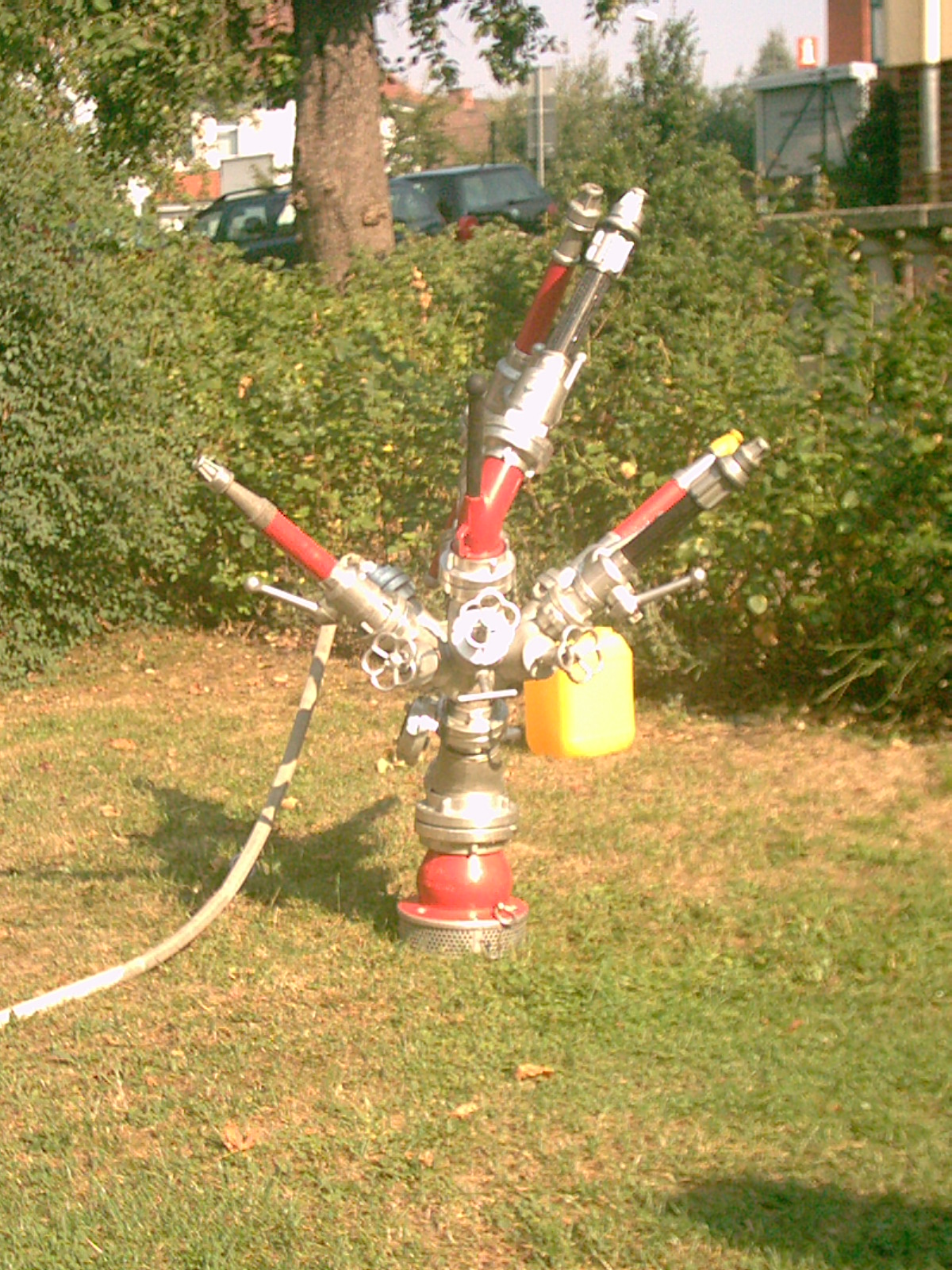 - Schranke mit einem leeren Eimer als Gegengewicht. Eimer muss Wasser aus D-Strahlrohr gefüllt werden, damit sich die Schranke öffnet