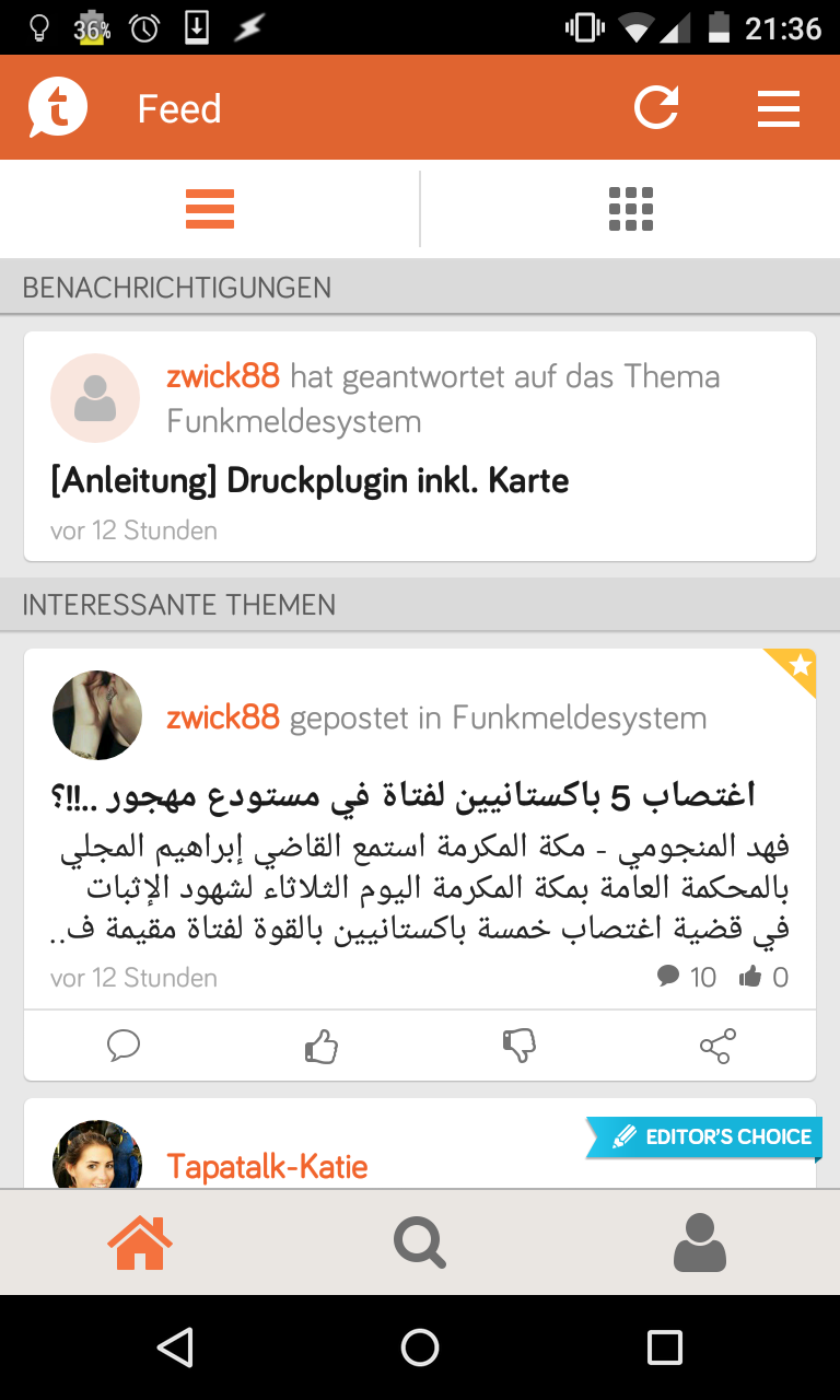 Neueste Tapatalk probiert,
