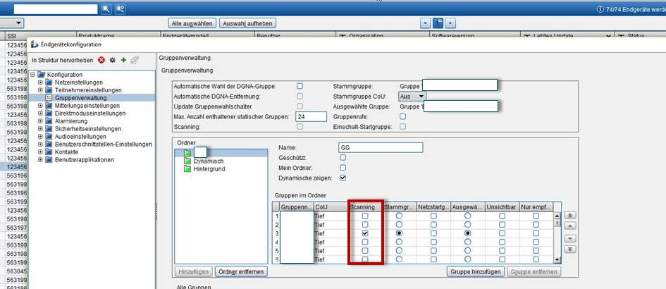 Weiß jemand was im Menü Gruppenverwaltung in der Tabelle die Spalte "Scanning" für eine Bedeutung hat? Vor allem wenn mehrere Gruppen angewählt sind? Gleiches gilt für die Spalten "Stammgruppe" und "Ausgewählte Gruppe".