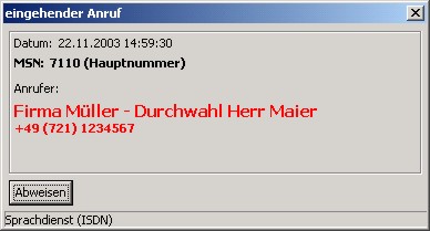 Ich suche ein Programm , dass wenn meinen Anschluss anruft,sich ein Fenster öffnet mit der Anrufnr. und wenn "eingespeichert" mit dem Anrufname ! Hat jemand so ein Programm oder ahnung wo man ein solches laden kann ?!