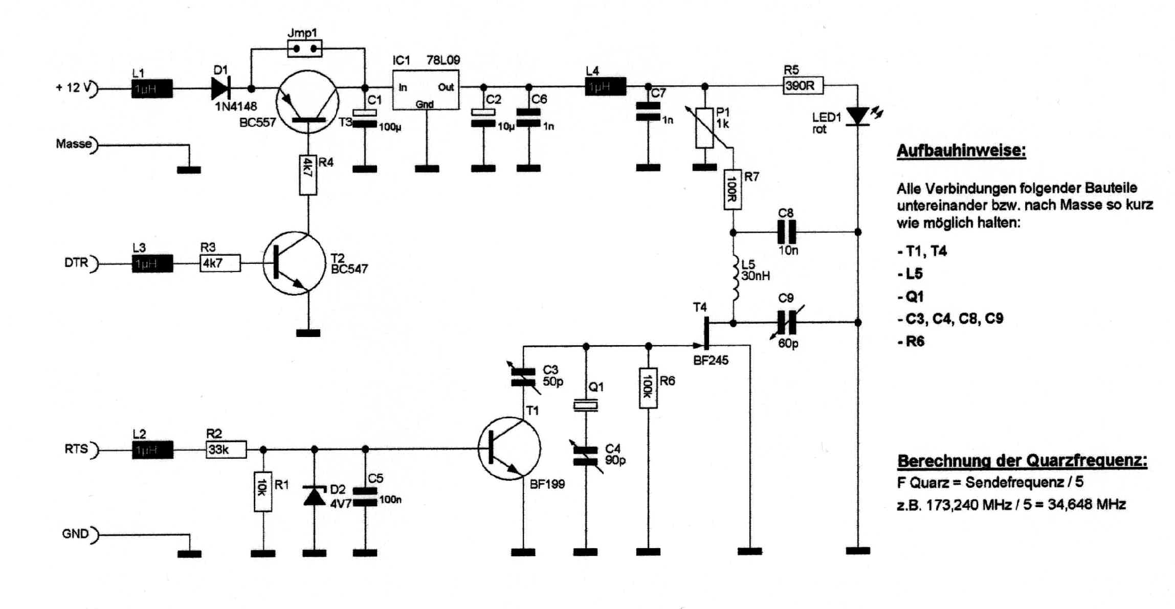 Als Quarz taugt jeder, der entweder ein 5tel, 7tel, 9tel oder 11tel der gewünschten Sendefrequenz hat.