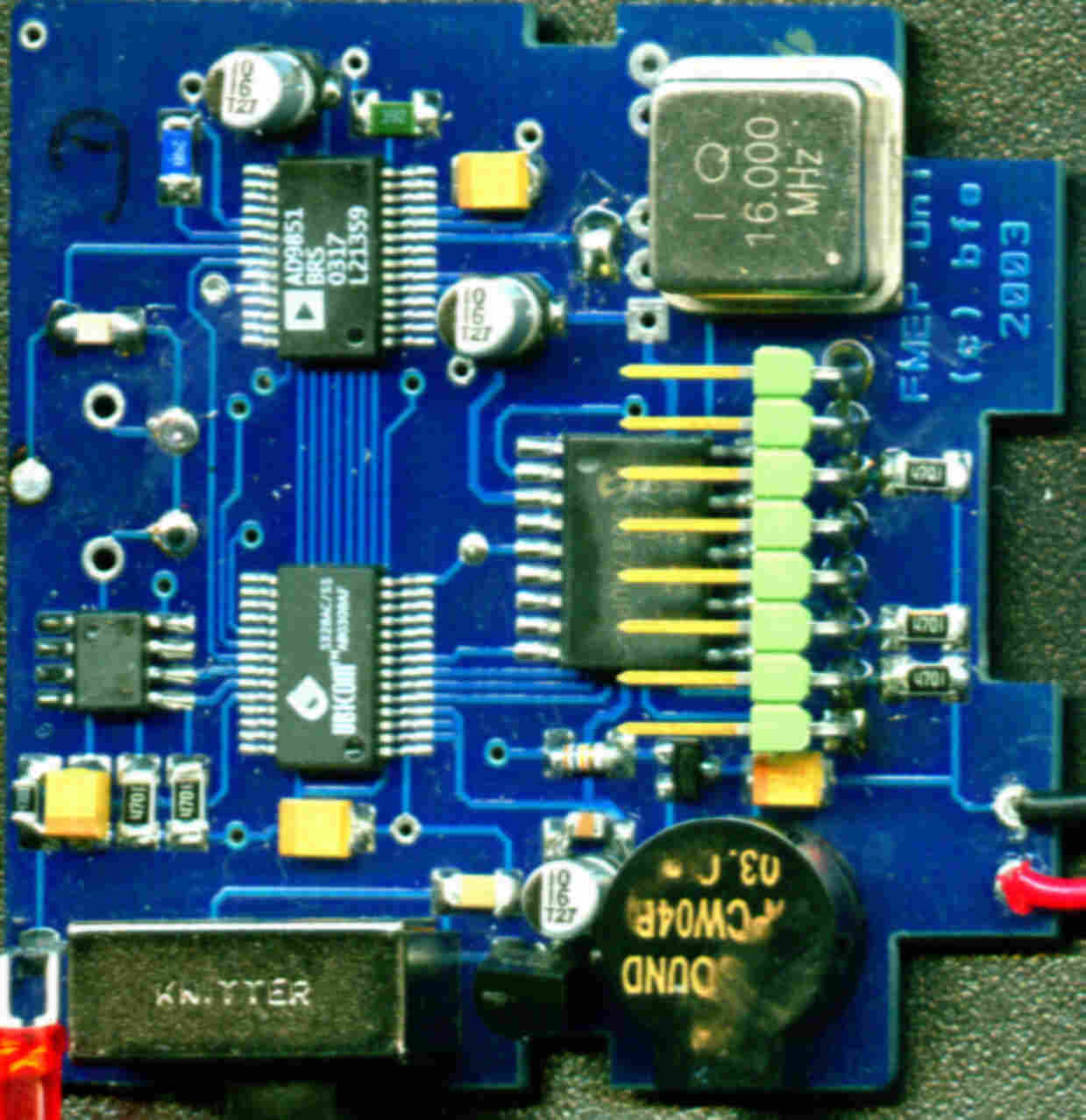 Vom Ausgang des DDS-IC (AD9851) geht es auf einen Keramikkondensator und einen Folientrimmer, die beide direkt auf Masse liegen und von diesem Punkt aus auf den Leiterbahnmäander. Der ist im Original 7*14mm groß.