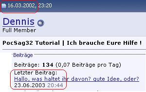 Anbei Datum von diesem Thread und letzter Beitrag von ihm...