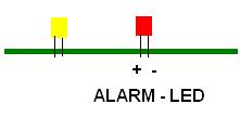 nimmt einen 08/15 Transistor klemmt ihn an die rote Alarm LED an ... nun steuert ihr mit dem Transisitor ein Relais an und fertig.
