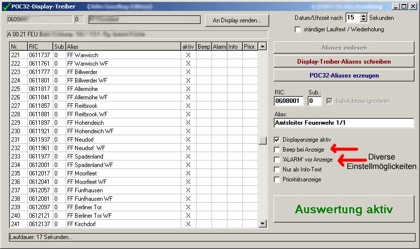 Dort kann man zu jeder einzelnen RIC diverse Einstellmöglichkeiten vornehmen.
