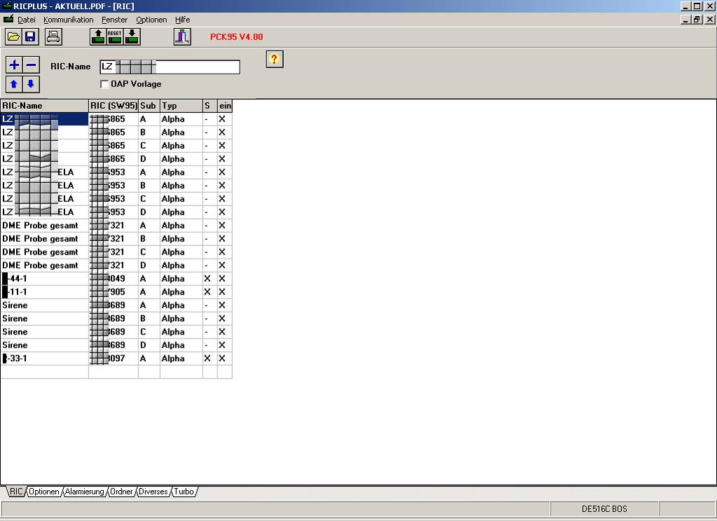 ich hab nen patron pro ft (DE516C/16) und wollt mal gern wissen , wie so eine RIC-Liste in der Pck95 aussehen muss und was unter "service" -> "max. RIC" eingestellt sein muss.