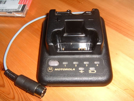 Wichtig ist das du einen Motorola Akku hast (mit Nase an Masse) . Dan kanst du deine Ladeschale verwenden .