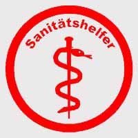 Das Funktionskennzeichen „Sanitätshelfer“, Durchmesser 5 cm, wird jeweils auf der linken und rechten Seite des Feuerwehrhelmes getragen.