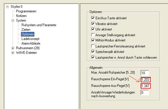 mit dem Werte "Rauschsperre aus" legst Du fest, bei welchem Pegel die Rauschsperre (=RS) öffnet. Je größer Du den Wert ansetzt, desto stärker muss das ankommende Signal sein um über die RS zu kommen.
