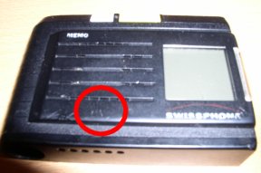 Wenn man beim Gehäusevorderteil unter dem Lautsprecher draufdrückt, schaltet sich der Memo selber aus und wieder ein.