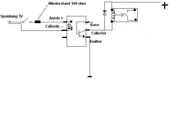 Wenn nun die diode beschaltet wird sollte strom fließen und den Relais anziehen!