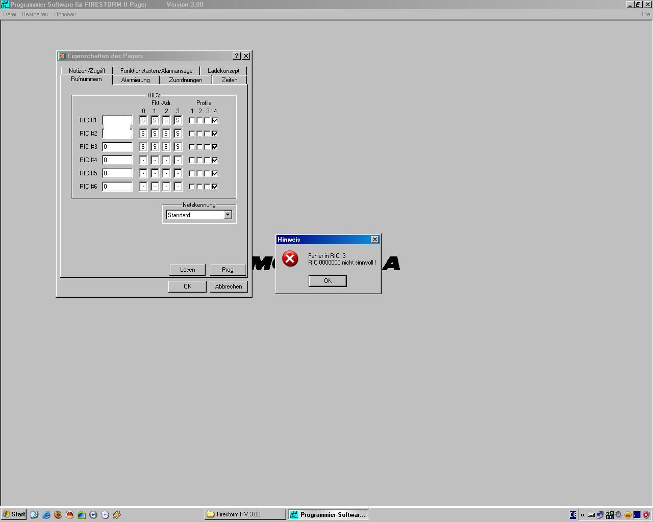 Wenn ich über einen PC gehe, der einen COM-Anschluss hat, dann beginnt er mit einlesen, zeigt die ersten RICs an und bei der dritten RIC meint er: "RIC 0000000 nicht sinnvoll!" und kann nicht weiter einlesen! Was kann das nun wieder zu bedeuten haben? Hab es auch schon mit der Programmiersoftware Version 2.11 probiert, nur noch nicht mit 2.0, aber eigentlich müsste es ja mit der 3.0 am besten funktionieren!