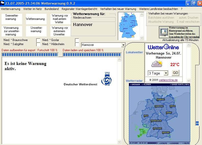 + Speichern der aktuellen Warnlage als htm-Datei und txt-Datei