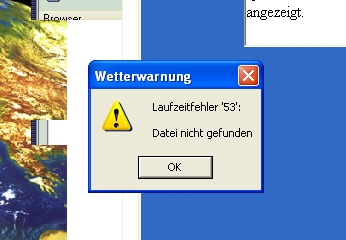Ist der Fehler aufgetretten, dachdem das Programm ne Zeitlang lief, oder beim Systemstart (automatisch starten lassen von Wetterwarnung) . Das blödestes ist das man im Netz, noch in der Hilfe von VB, hilfe zu deinen Problemen bekomme.