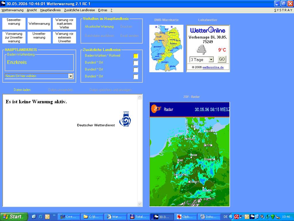 Hallo hier die neuste Betaversion von mein Programm zur Wetterwarnung.