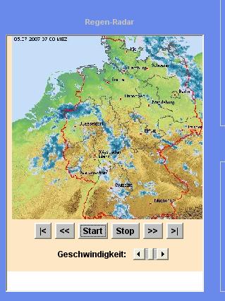 So ich habs mir angeguckt. Es währe möglich einzubauen. Allerdings würde das Bild bissen kleiner werden. Und das Programm Wetterwarnung müßte den Quelltext zum Java-Regenradar in regelmäßigen Abständen neu generieren, weil Grafiken über Parameter aufgerufen werden. Währ also machbar.