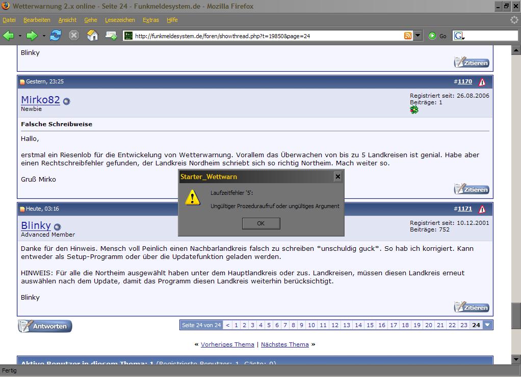 Ich habe seit heute Abend ein Propblem beim Starten von Wetterwarnung.