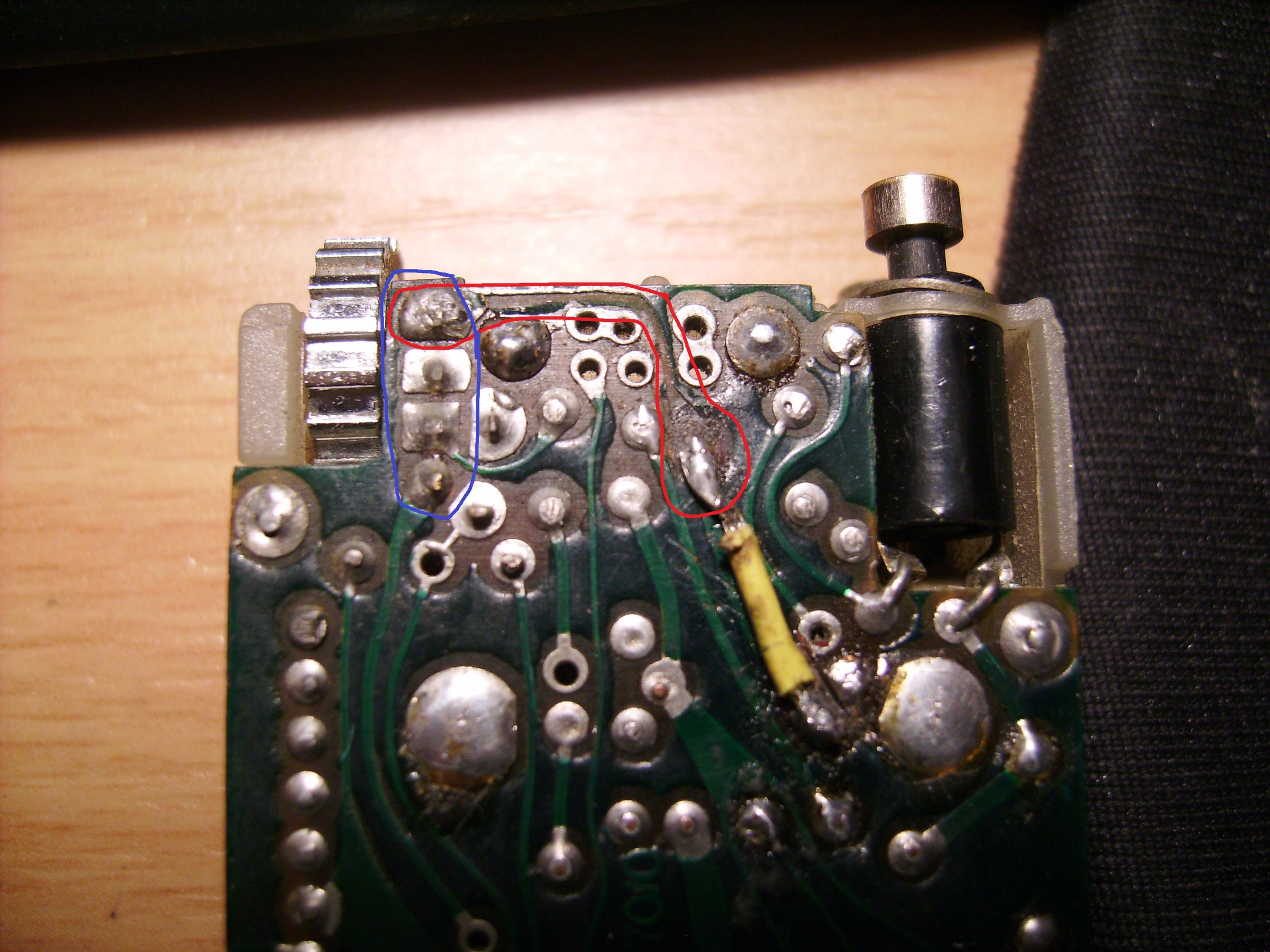 Habe dir nochmal ein Bild in den Anhang wo du schön sehen kannst wie der original Zustand ist, den verlöteten Wiederstand kannst du Ignorieren, der ist dafür gedacht das man die Mithörfunktion von der Lautstärke regeln kann.