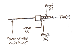 öhm kein plan soweit ich weis is auf so nem stecker erdung 2 für stereo sound und micro dann 1ner. zumindest bei den normalen 3pol klinke :)