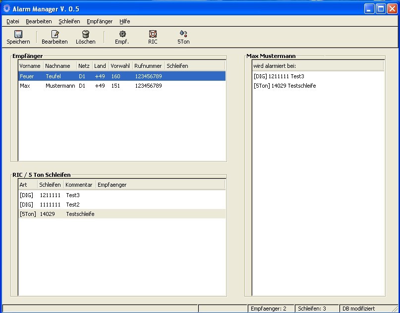 - Empfänger Verwaltung für SMS Alarmierung