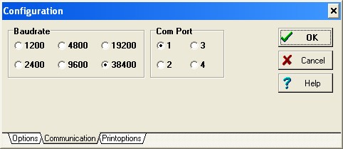 Probier es mal mit 9600 Baud und nicht mit 38400 Bd.
