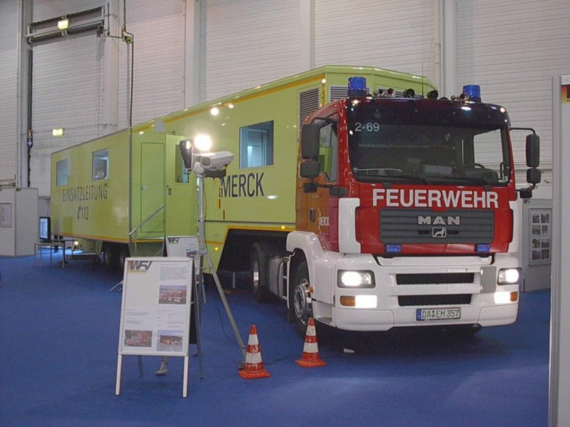 Habe den ELW von Merck nur kurz auf der Interschutz gesehen. Ich kann leider auch nicht so viel über die Technik sagen. Ich weiß nur das er auf jeden Fall ziemich groß ist. Ich glaube auch das er doch relativ viel Spielzeug hat. Der ELW hat z.B. an beiden Eingangstüren eine Sprechanlage mit Kamera. Ansonsten innen riesig viel Platz, nach beiden Seiten ausziehbar.