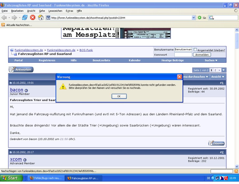 Jetzt war er wieder mal - der Fehler bei Klick auf "Foren". Diesmal konnte ich auch den Fehlerdialog kopieren. Fehler trat im Browser Firefox unter Windows XP auf, der Fehlerdialog kam in Form einer Website:
