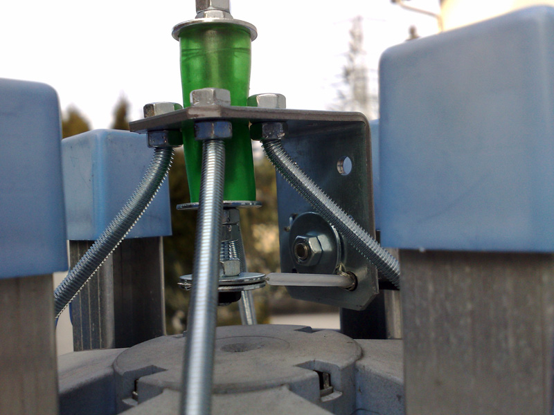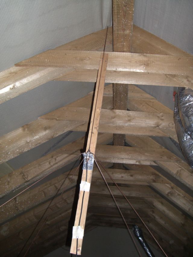 An die andere Seite des Winkels kann man mit Mastschellen das ganze Teil an einen Mast klemmen. Groundplanes brauchen nicht sooo hoch zu sitzen, da sie ja ihre Masse selbst mitbringen. Muttis Wäscheleinenmast tut es also nach kurzen Diskussionen über das Aussehen von dem "Drahtgedöhns" auch!*g*