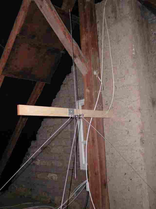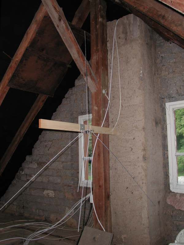 Momentan steht die Groundplane zum Entsetzen meiner Frau provisorisch auf einer alten Gardinenstange montiert neben der Terasse, aber der Umzug auf den Dachboden steht bevor.