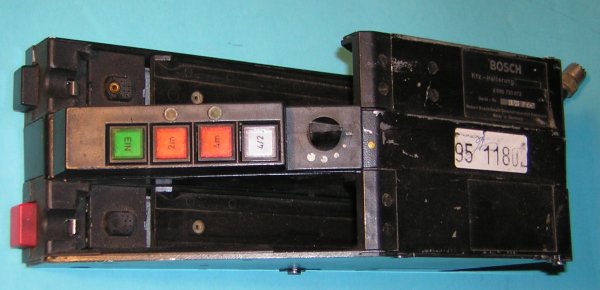 dass sieht wie der Funkcontainer eines GruKw (BePo bzw. BuPol, Mercedes Benz 614 bzw. größer) aus. Der Befand sich zwischen Fahrer und Beifahrersitz und nahm grundsätlich ein 4m-KFZ-Gerät sowie wahlweise eine Bosch-Aktivhalterung (für 2m-HFG) oder ein 2m-KFZ-Gerät auf.