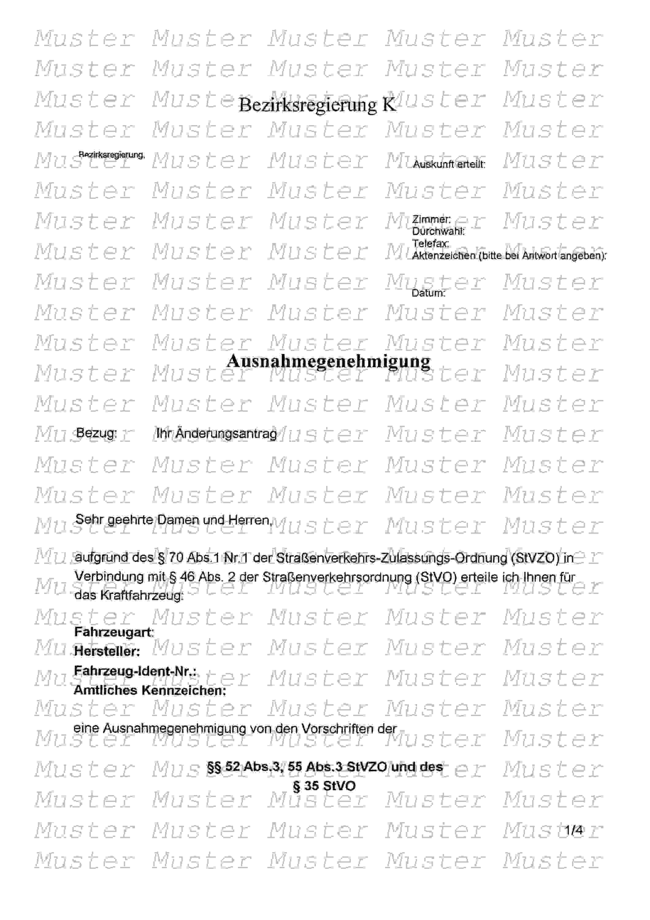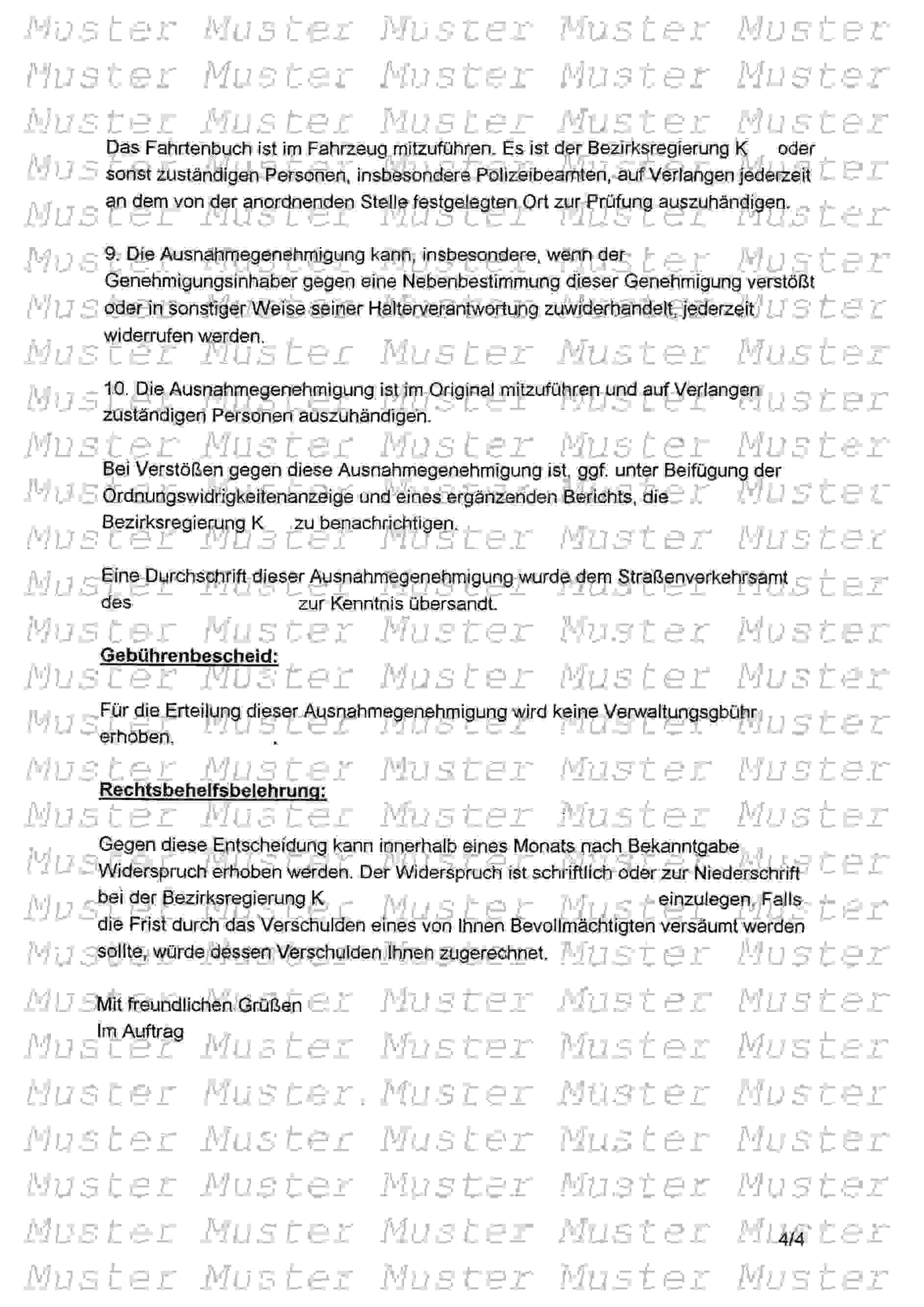 Habe ich mich darin ebenfalls bereit erklärt, eine Kopie von so einer Sondergenehmigung zu besorgen.
