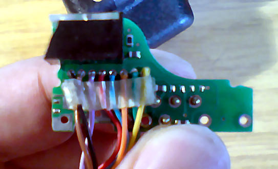 Wenn Die Platine draussen ist, kommen die Kabel in folgender Reihenfolge an die Platine.