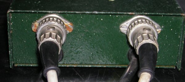 Das Gerät hat zwei Stecker, einen ganz offensichtlich für die Handapparatebuchse, der andere mit Ausschnitt für die Zubehörbuchse am FuG 7b.