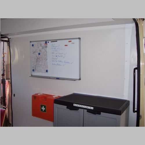 baut euch den Innenraum mit Pappe vor. geht gut. Dann kann man sich das ganze auch viel besser vorstellen. Haben wir mit unserem ELW auch gemacht. Und der Aufbauhersteller wusste anschliessend genau wie´s aussehen soll.