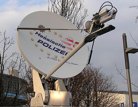 Zur Erprobung dieser VSAT-Technik im Rahmen polizeilicher Einsätze wurde von der hessischen Polizei eine selbstausrichtende VSAT-Anlage der Firma Satlynx beschafft. Diese kann mit handelsüblichen Dachträgersystemen auf Fahrzeugdächern befestigt werden und ist in kürzester Zeit einsatzbereit.