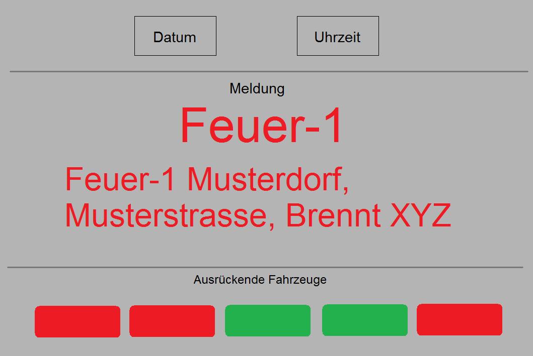 jetzt habe ich da nen paar wünsche evtl. sind die ja machbar (ich habe da keine Ahnung von und wäre über Hilfe dankbar) Ich habe unten ein Bild beigefügt wie ich mir den Bildschirm nach einer Alarmierung vorstelle.