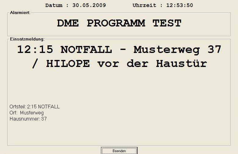 11:13 "Einsatzstichwort" - "Straße xx" / "Meldung"