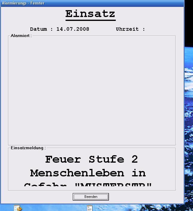Wir fänden es gut wenn man bis zu drei Bilder gleichzeitig einblenden könnten. Unsere Alarmmeldung enthält immer od mit oder ohne SoSi befahren werden soll Einsatzstichwort, Anschrift, und bei Menschen leben in Gefahr das Kürzel MIG. Wenn es möglich ist würden wir links unten anzeigen lassen ob mit SoSi oder ohne gefahren werden soll in der Mitte das Symbol für das Alarmstichwort und recht MIG oder nicht.