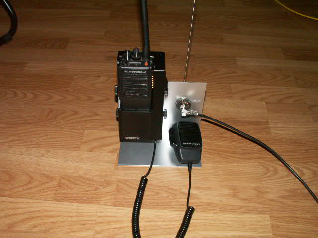 GP 900 in einer Aktivhalterung und einer Heckantenne. Beides zusammen auf einen Aluwinkel geschraubt.