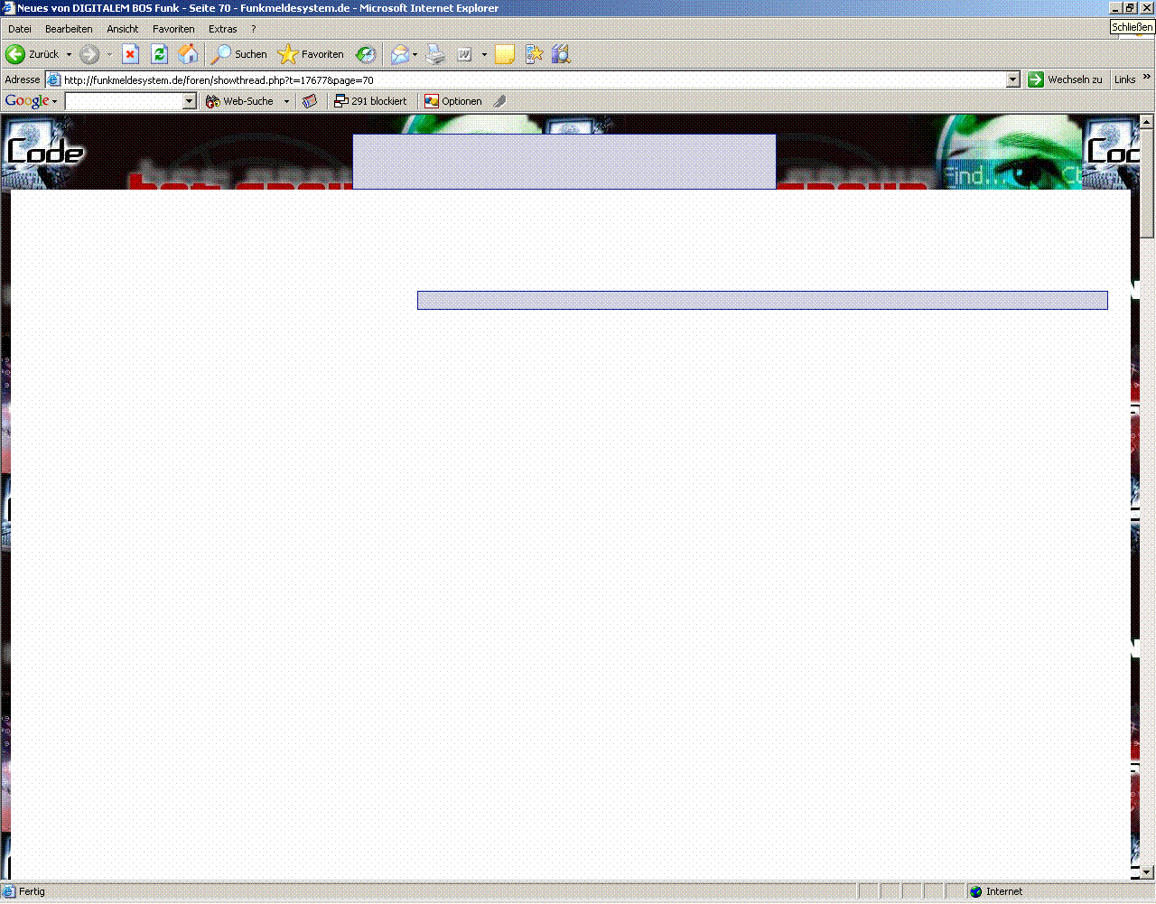 wenn ich die Seite 70 vom Thema "Neues von DIGITALEM BOS Funk" aufrufe, erscheint nur ein Hintergrundbild mit der Aufschrift Code links oben und einem grünen Kopf rechts oben....