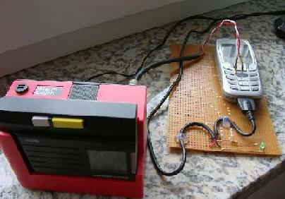 Die Stromversorgung des Handys wird über das übliche Netzteil sichergestellt. Dazwischen hab ich noch eine kleine LED gelötet, damit ich sehe, ob das Handy gerade lädt, oder nicht (just for fun!).
