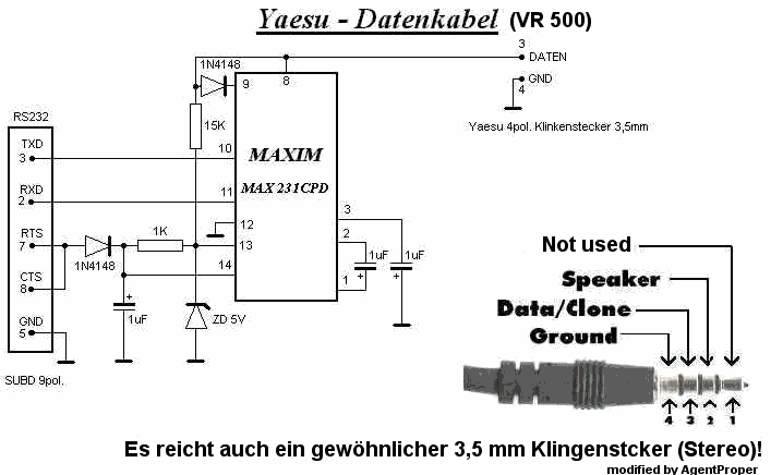 Hierfür soll das eigentlich für den VR-500 gedachte Kabel CT29A geeignet sein.