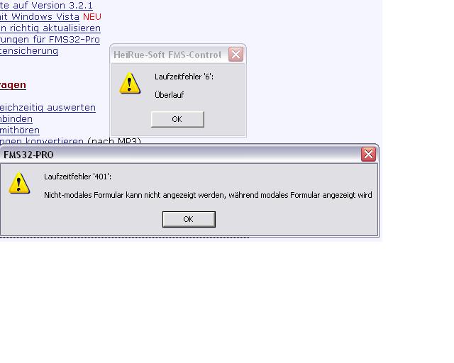 tach hab ein problem es kommt immer wieder laufzeitfehler 6, hab neu instaliert hab alle daten wo zu fms32pro gehören raus genommen immer wieder der gleiche fehler kommt nach 10sec. nach dem start.