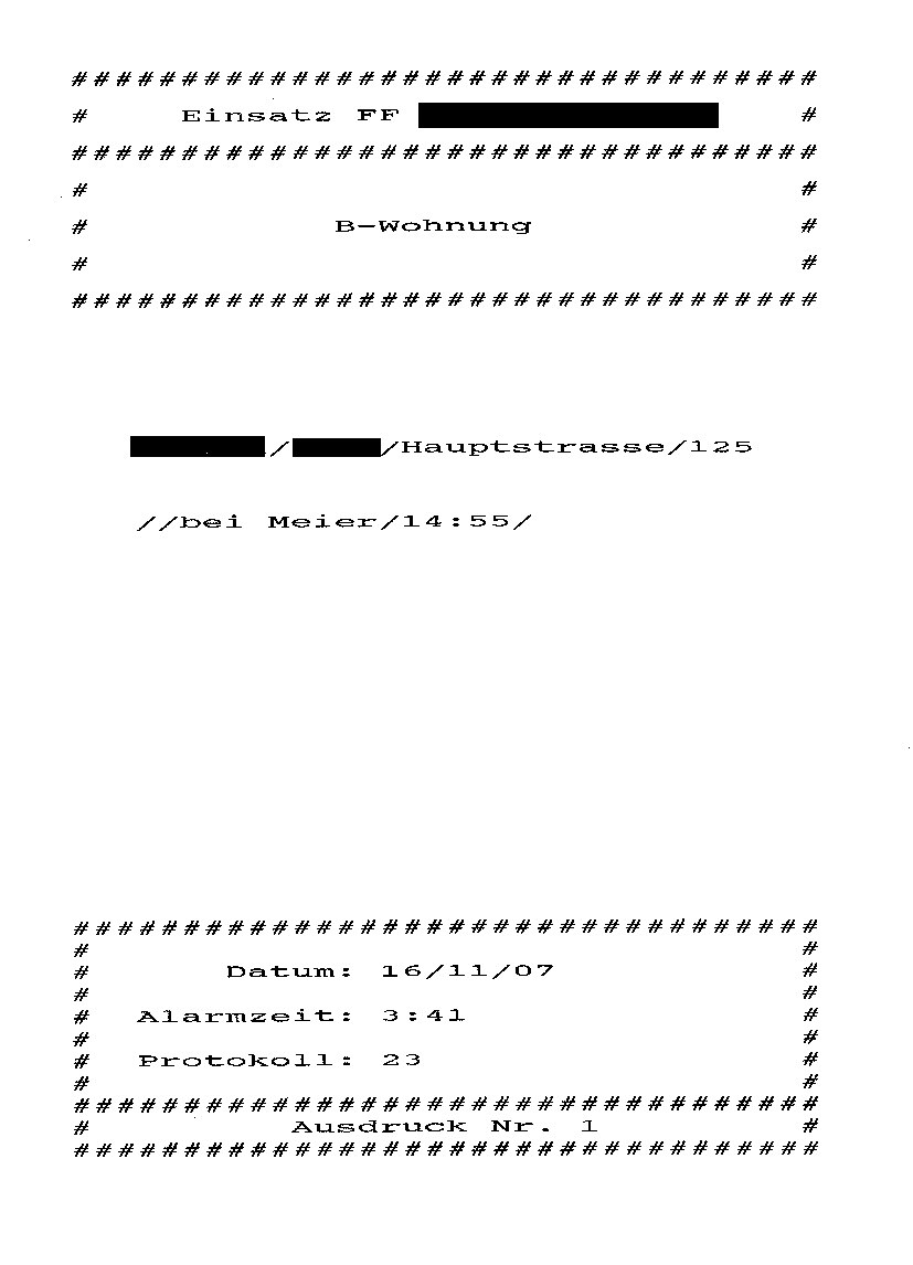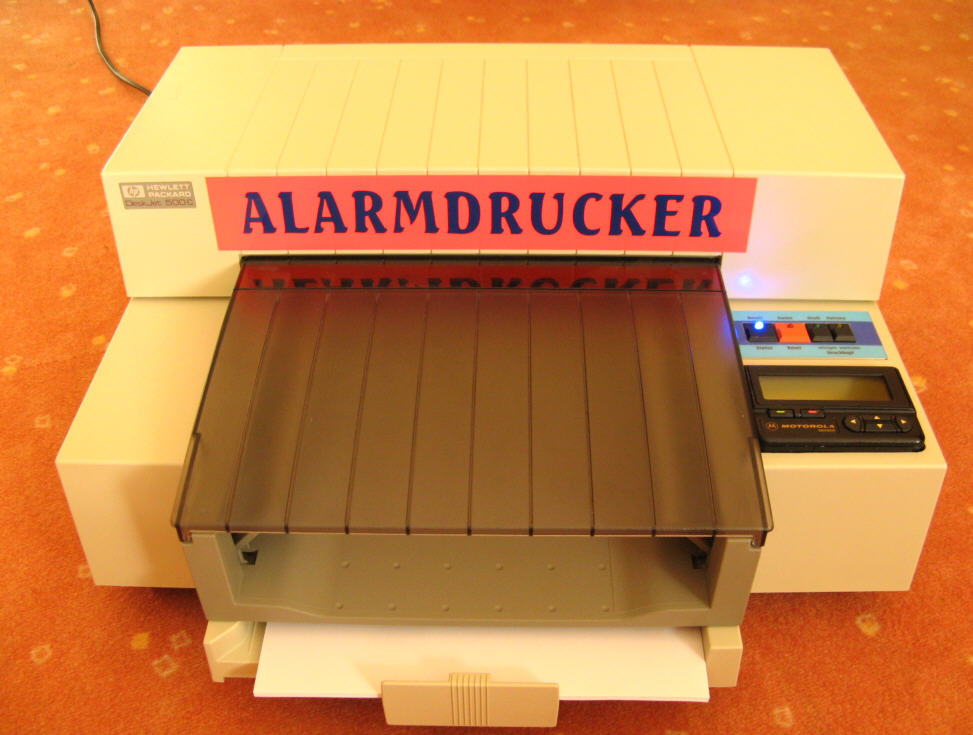 Als wir unseren ersten Alarmdrucker gebaut haben, wurden verschiedene Varianten überdacht. Ein üblicherweise bei den BFen verwendeter Nadeldrucker schied aus, da es beim einzelnen Abreißen der Endlosblätter im Trubel des Ausrückens eine Katastrophe gegeben hätte. Nadeldrucker mit Einzelblatteinzug waren irgendwie nie richtig verbreitet, wären aber eine Alternative gewesen.