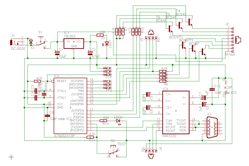 Es enthält einen AT90S2313 Prozessor, der selbst programmiert