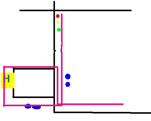 Die Ampel oben soll beeinflusst werden und sie schaltet nur, wenn der Bus die vorgegebene pinke Strecke abfährt.