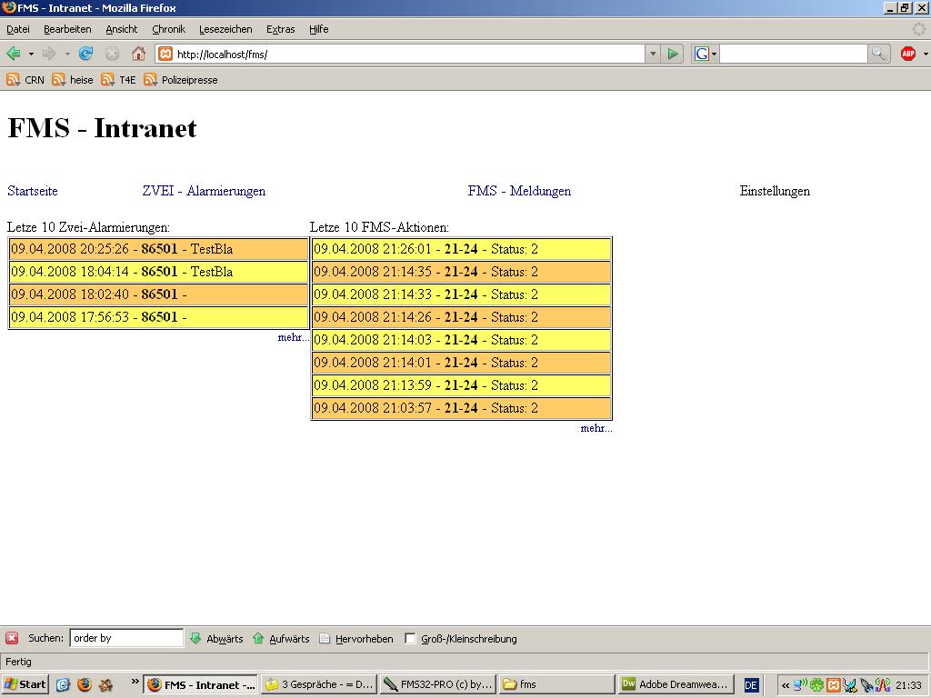 Ich habe mich auch mal an eine FMS - PHP-Anzeige gewagt, wenn man das so wenden kann.