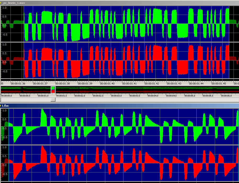 Oben eine am PC-LINE-IN Aufnahme - Unten Mik-Eingang Soundkarte.