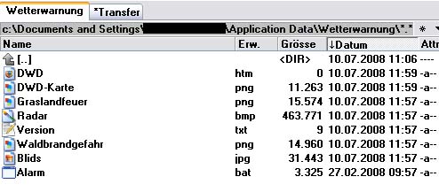 Ich benutze Windows XP Prof (engl.): C:\Documents and Settings\[Username]\Application Data\Wetterwarnung